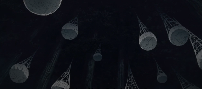 산의 서쪽에는 대량의 고치가 매달려 있는 걸 보고 왔다고합니다.